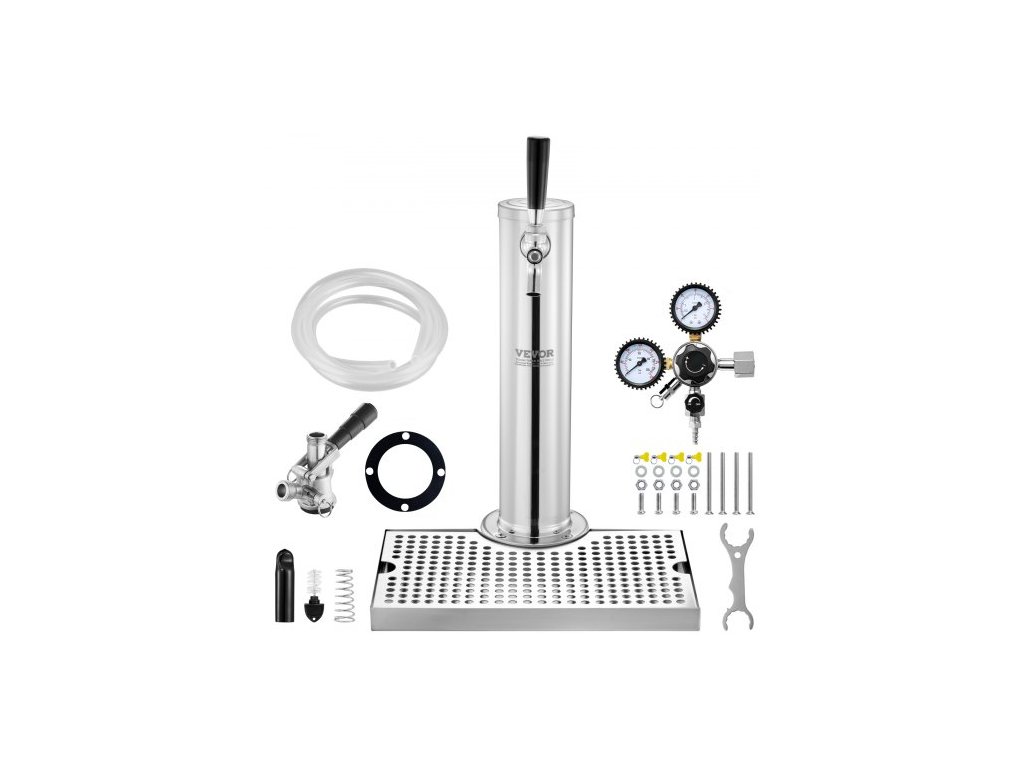 Sada VEVOR Kegerator Tower, sada pro přestavbu piva na jeden kohout, výčepní věž z nerezové oceli s dvojitým manometrem W21.8 regulátor a spojka sudů S-System, odkapávací miska na pivo pro párty a domácí použitíUchovávejte si čerstvost, vychutnejte si každou chuť