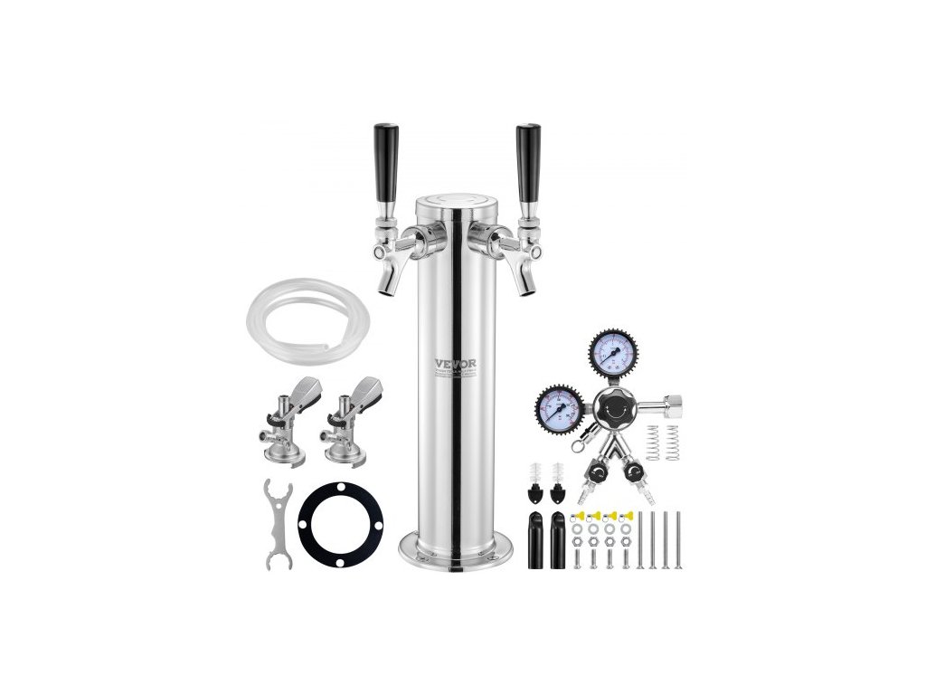 Sada VEVOR Kegerator Tower, sada pro přestavbu piva se dvěma kohouty, výčepní věž z nerezové oceli s dvojitým manometrem W21.8 regulátor a spojkou sudů A-System, odkapávací miska na pivo pro párty a domácí použitíUchovávejte si čerstvost, vychutnejte si každou chuť