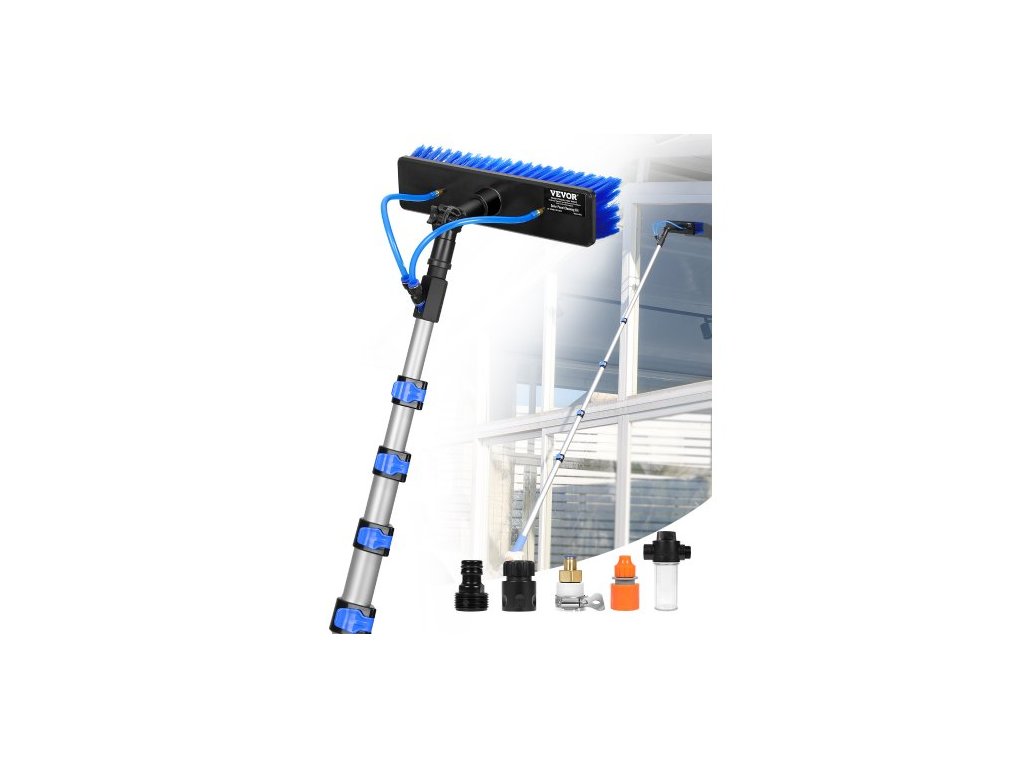 Sada vodních tyčí VEVOR, 7,3m čisticí tyč na solární panely s výsuvnou rukojetí, otočnou kartáčovou hlavicí o 180° a 20m hadicí, nástroj na čištění oken pro domácnost i venkovní použití pro solární panely karavanuProdloužený čisticí kartáč