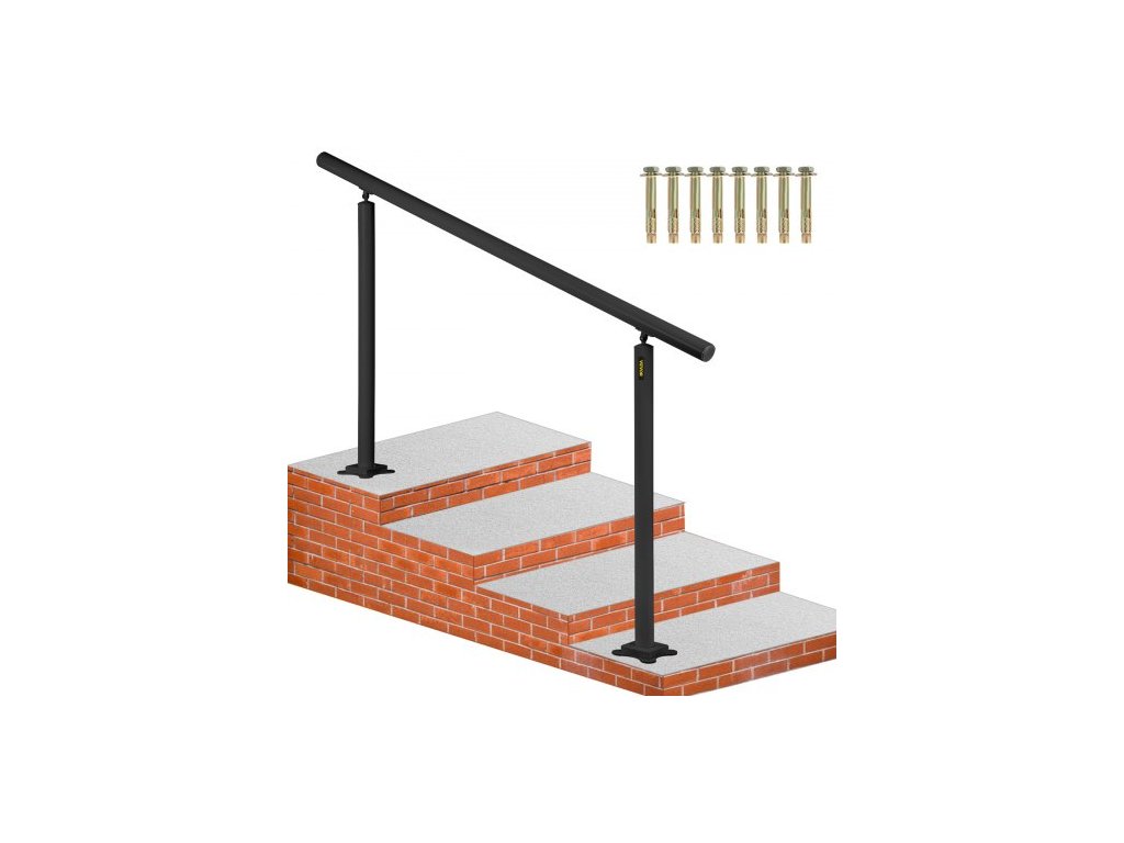 Sada zábradlí na schodiště VEVOR, 5 FT zábradlí pro venkovní 0-5 schodů, nastavitelný úhel černé hliníkové zábradlí, vnitřní a venkovní schody pro senioryVhodné 0-5 kroků