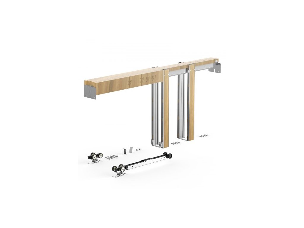 Sada zárubní VEVOR pro kapsové dveře, pro dveře o šířce 610–762 mm a výšce 2032 mm, sada kapsových dveří s obousměrným mechanismem tlumeného zavírání, plynulý a tichý posuv, snadná instalace, dřevo a pozinkovaná ocel, do obývacího pokoje