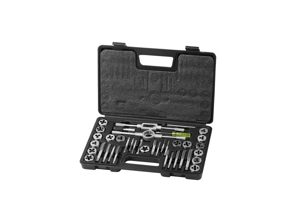 Sada závitníků a závitořezných čelistí VEVOR, 40dílná, obsahuje metrické rozměry M3 až M12, závitníky a závitořezné čelistí z ložiskové oceli, základní nástroj pro řezání vnějších a vnitřních závitů, s kompletním příslušenstvím a úložným pouzdrem.Profesionální sada nářadí