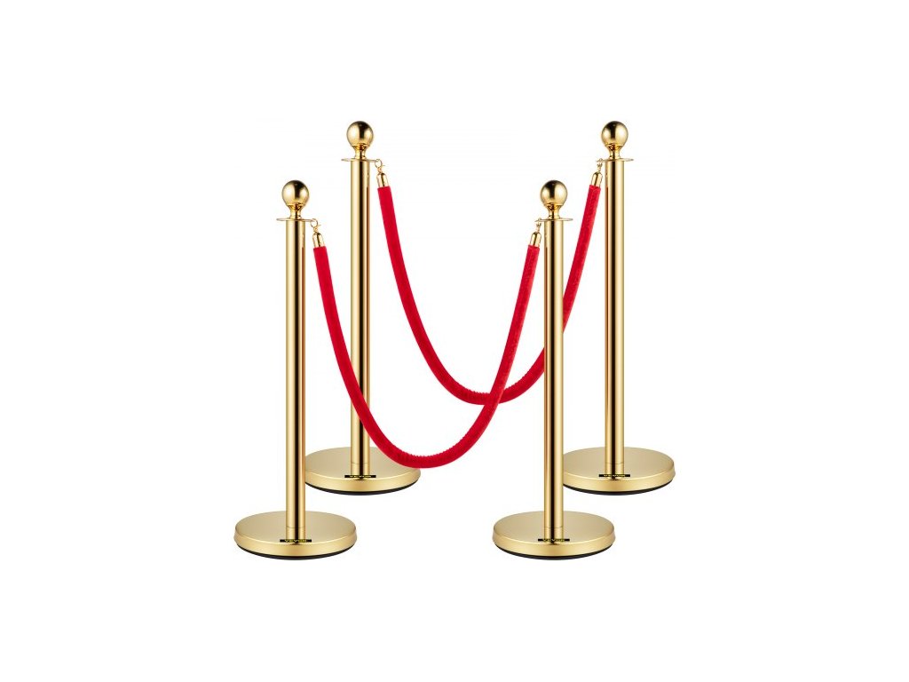 Sametová lana a sloupky VEVOR, červené lano 1,5 m, zlatý sloupek z nerezové oceli s kuličkou nahoře, červená zábrana proti davu, určená pro divadla, večírky, svatby, výstavy, pokladny, 4 sady201 Nerezová ocel