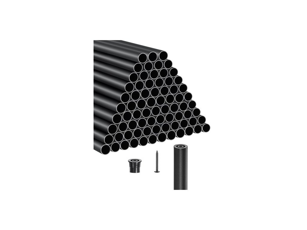 Schodišťové zábradlí VEVOR, balení 101 ks, hliníkové schodišťové zábradlí o průměru 91 cm, vodotěsné kulaté kovové vřetenové zábradlí o průměru 3/4 palce, duté zábradlí na terasu s krytkami a šrouby pro schody, verandu, terasu, matně černé19mm vnější průměr