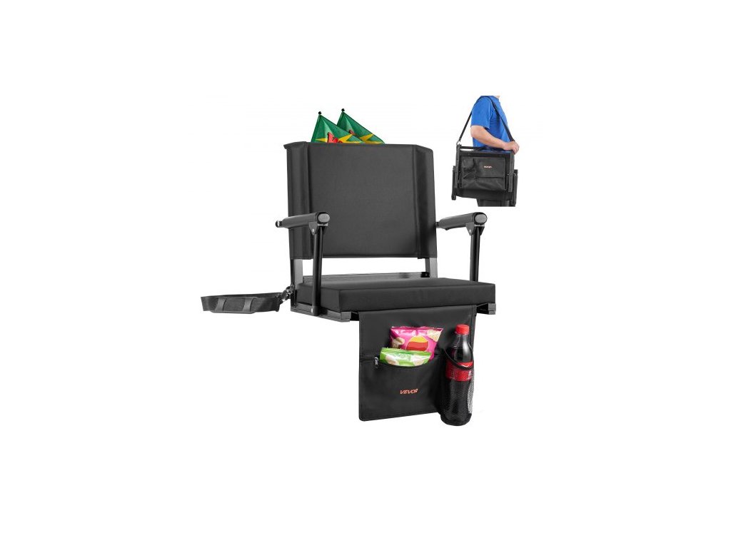 Sedadlo VEVOR na stadion, přenosné sedadlo na tribunu s loketní opěrkou, opěrkou zad a silným polštářem, lavice na tribunu včetně ramenního popruhu, háčků, držáku na nápoje, černé sedadlo na fotbalovou tribunu, 1 ks