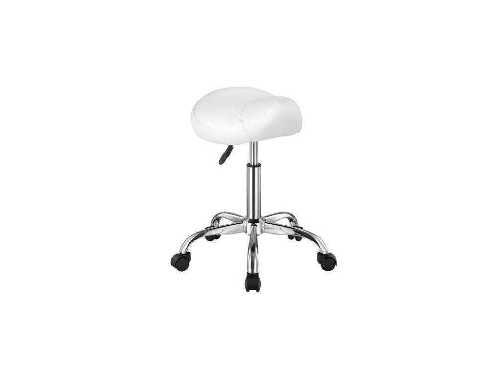 Sedlová židle VEVOR s kolečky, nosnost 200 kg, ergonomická kolečková židle, výškově nastavitelná, zesílená PU kůže, otočná sedlová židle pro salon, lázně, masáže, tetování, kliniky, bílá