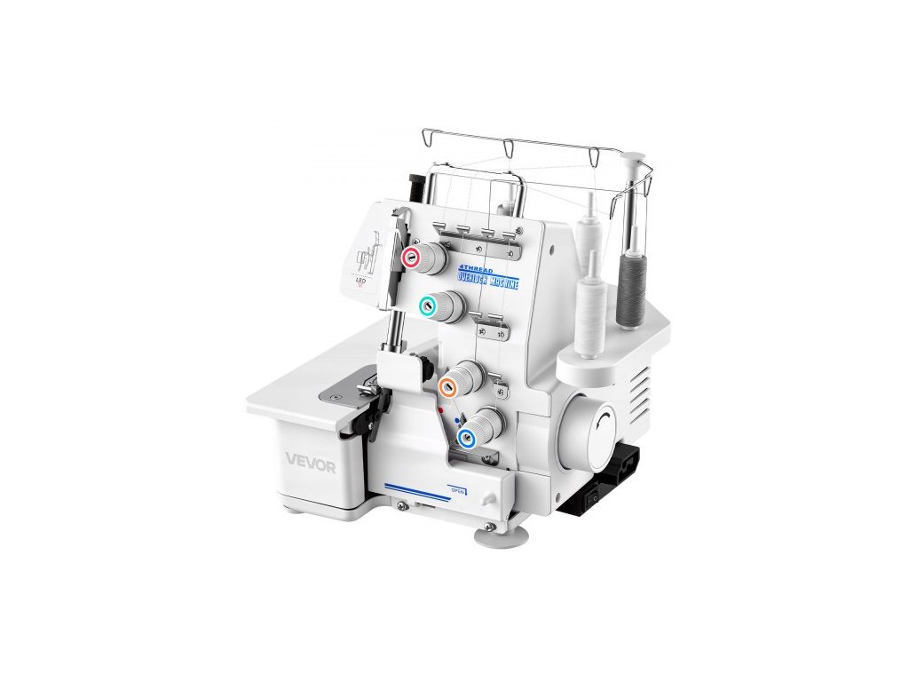 Šicí stroj VEVOR Serger Overlock, 1250 stehů za minutu, 3 a 4 nitě, s LED světlem a silnými přísavnými nožičkami, odolný kovový rám pro různé látky, bílýMožnosti 3/4 nitě pro všestranné šití