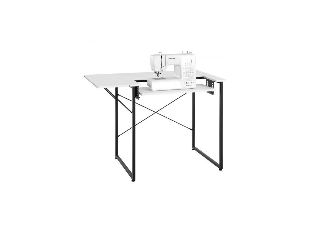 Šicí stůl VEVOR, víceúčelový stůl na šicí stroj se skládací boční policí, nastavitelná police, ocelové nohy, počítačový stůl pro domácnost, módní studio, umělecké studio, vzdělávací instituci, bílýSkládací šicí stůl