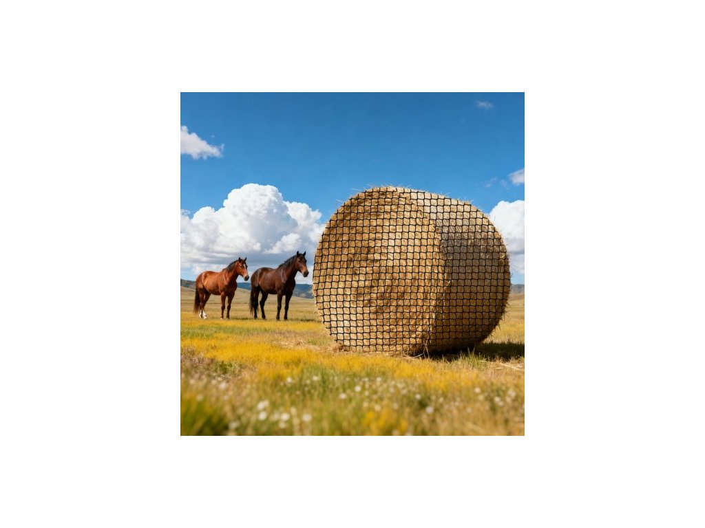 Síť na seno VEVOR na kulaté balíky, 1,8 x 1,8 x 1,8 m, otvory 42 x 42 mm, PE materiál, bezuzlové provedení, se stahovacími pásky, jehlovým člunkem, opravným provázkem a úložným vakem, pomalu krmná síť na kulaté balíky pro koně