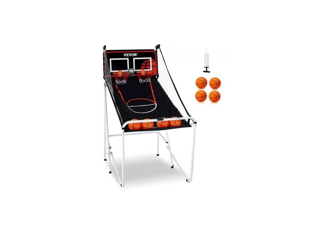 Skládací basketbalová arkádová hra VEVOR, vnitřní basketbalová hra pro 2 hráče, domácí duální odpal se 4 míči, 8 herních režimů, elektronická výsledková tabule LCD a pumpa, pro děti i dospělé (černobílá)Pouliční basketbal