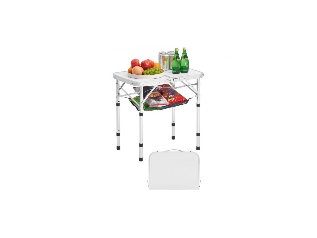 Skládací kempingový stůl VEVOR, přenosné boční stolky s nastavitelnou výškou, plážový stůl z hliníku a MDF se síťovanou vrstvou, rukojeť pro přenášení, lehký a kompaktní pro venkovní piknik a grilování, 24x16 palců, stříbrný