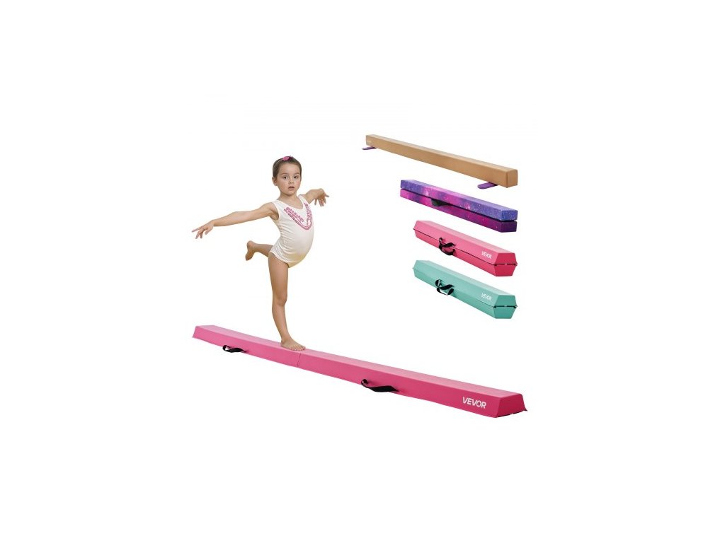 Skládací kladina VEVOR 8FT pro děti, stabilní gymnastická kladina 90,7 kg s protiskluzovými podložkami, gymnastické tréninkové vybavení s protiskluzovým dnem a přepravní taškou pro domácí posilovnu, růžováVyrobeno z EVA pěny s vysokou hustotou