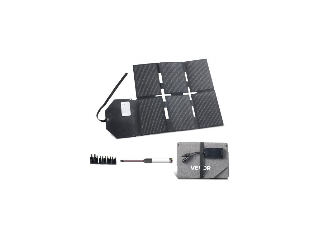 Skládací nabíječka solárních panelů VEVOR 60W, 16BB monokrystalický solární panel typu N s účinností 24 %, lehký a přenosný s výstupem MC4, porty typu C, USB-A a DC pro elektrárny, kempování, turistiku