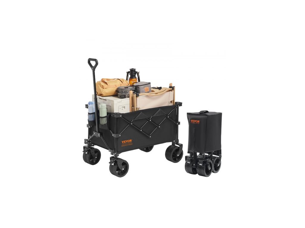 Skládací plážový vozík VEVOR, 220l plážový vozík s terénními koly, odolný skládací vozík s maximální nosností 150 kg s držáky na nápoje, sportovní vozík na kempování, nakupování, zahraduVelká úložná kapacita