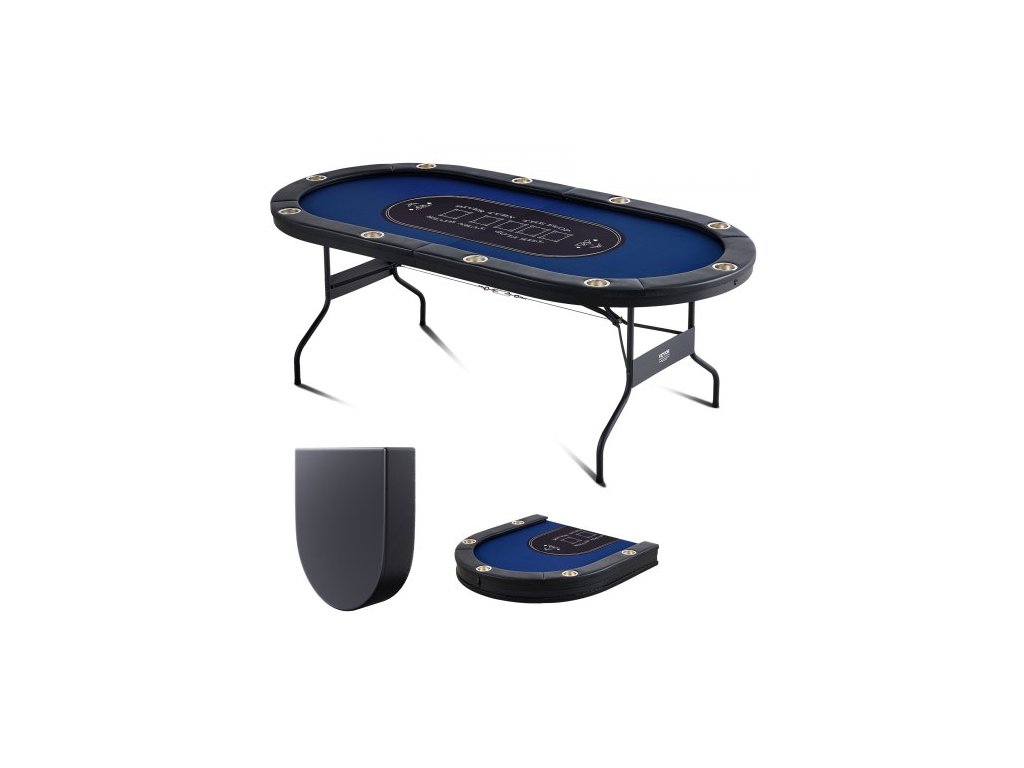 Skládací pokerový stůl VEVOR pro 10 hráčů, pokerový stůl na Blackjack a Texas Holdem s polstrovanými zábradlími a držáky na nápoje z nerezové oceli, přenosný skládací stůl na karetní deskové hry, oválný kasinový stůl o průměru 84Multifunkční pokerový stůl