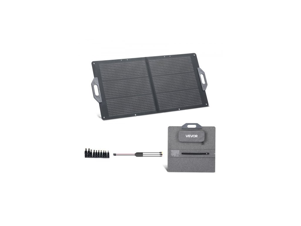 Skládací solární panel VEVOR 100W, přenosná monokrystalická nabíječka solárních panelů s vysokou účinností 24 % a výstupem MC4, porty USB-A, typu C a DC, vodotěsnost IP65 pro elektrárny, kempování, turistické výlety