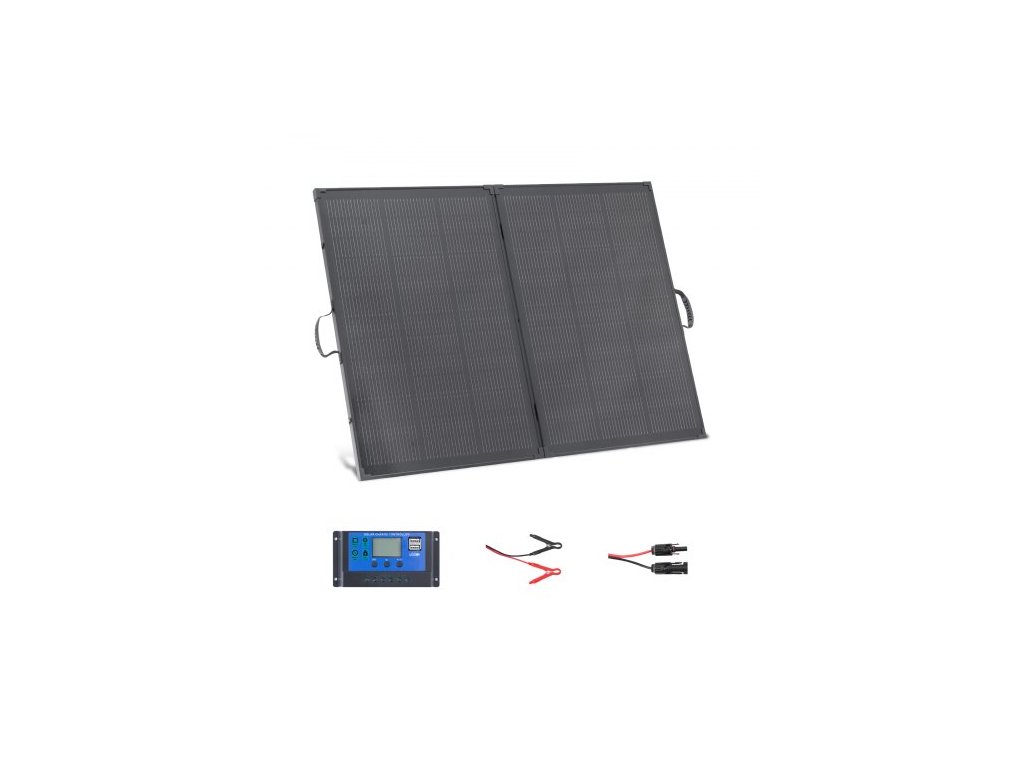 Skládací solární panel VEVOR 200W s rámem, přenosná monokrystalická nabíječka solárních panelů s vysokou účinností 23 %, 30A PWM regulátorem a výstupem MC4, vodotěsný IP67 pro kempování, turistiku a výlety v karavanu