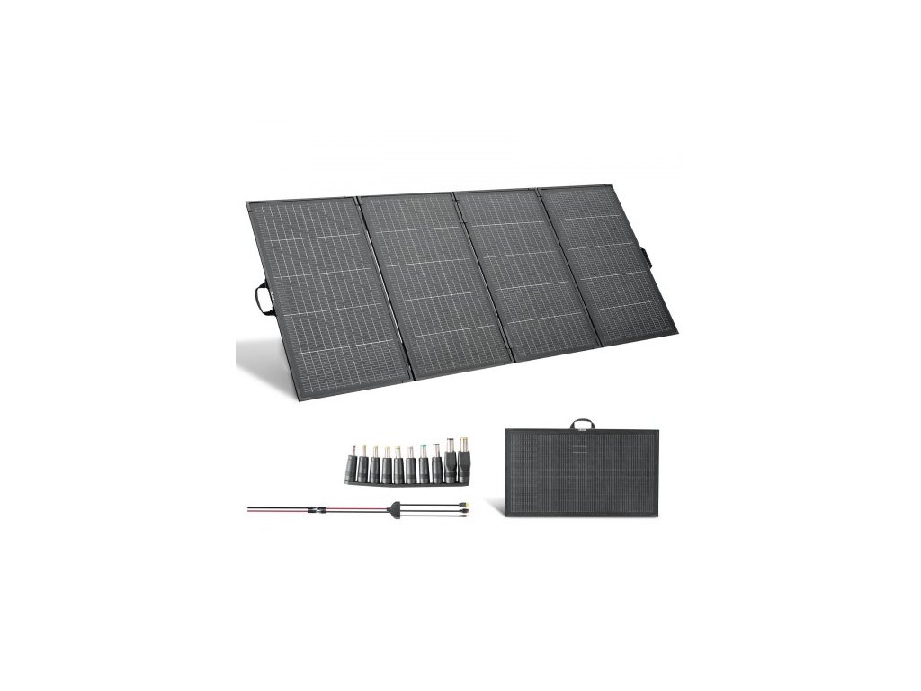 Skládací solární panel VEVOR 400W s rámem, 16BB monokrystalický solární panel typu N, nabíječka 24% účinnosti, vodotěsný IP67 s výstupem MC4 a 10v1 DC adaptérem pro elektrárny, kempování, turistiku a výlety.Vysoká účinnost konverze