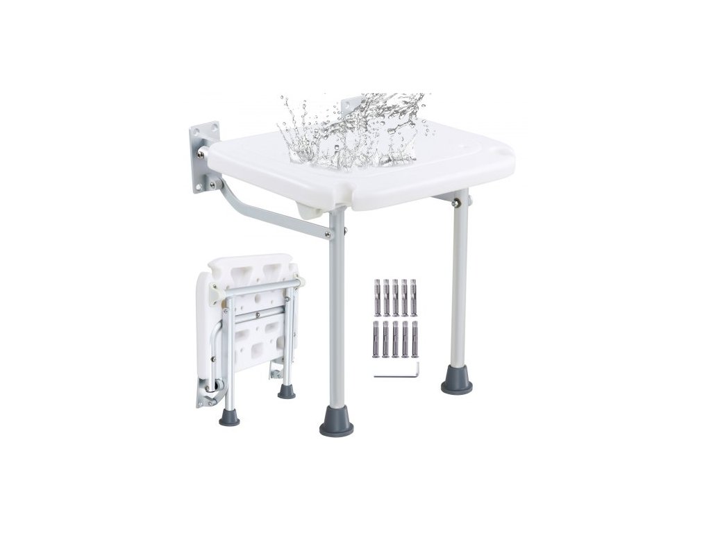Skládací sprchové sedátko VEVOR z PE, 15,7'' x 14,8'' v rozloženém stavu, nástěnná skládací sprchová lavice s nosností 500 liber, prostorově úsporné skládací sprchové křeslo pro seniory, těhotné ženy, děti a dospělé