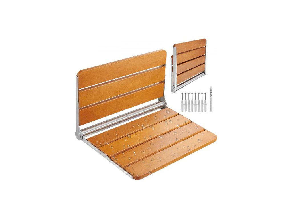 Skládací sprchové sedátko VEVOR z teakového dřeva, 20,9 x 16'' v rozloženém stavu, nástěnná skládací sprchová lavice s nosností 500 liber, úspora místa v domácí péči, skládací sprchové křeslo, pro seniory, těhotné ženy a dětiZažijte pohodlí a bezpečí ve sprše