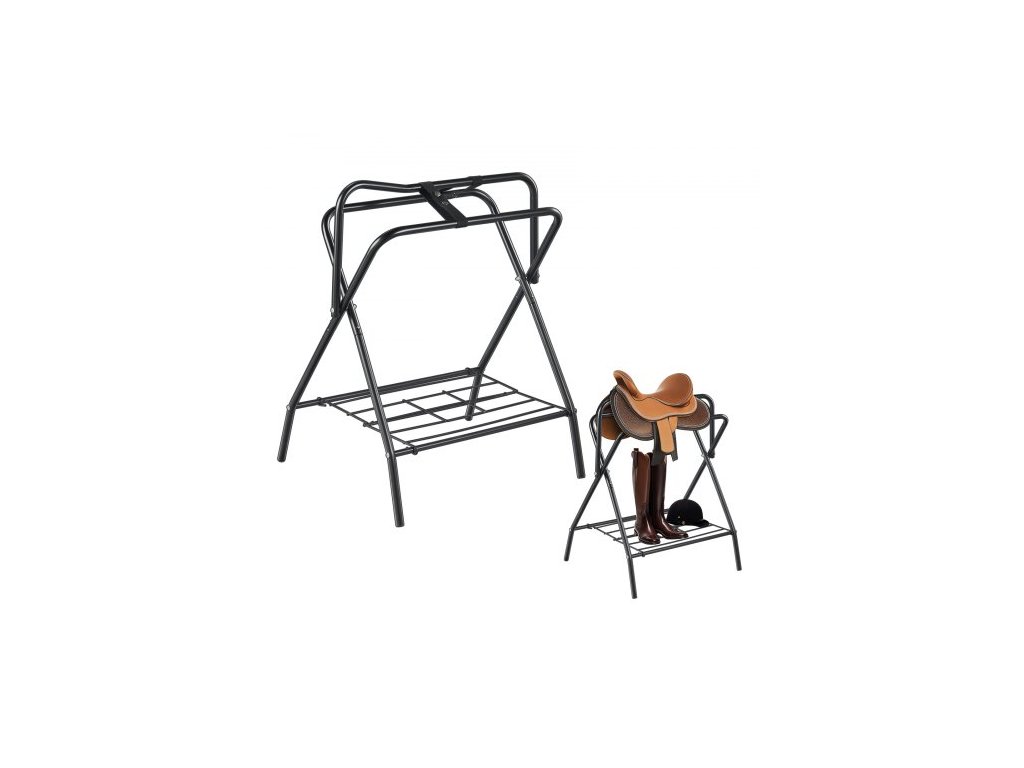 Skládací stojan na sedla VEVOR, 28 x 19 x 37,5 palce, 2 balení, volně stojící stojan na sedla pro koně, přenosný držák na deky pro koně, odolný ocelový stojan na sedla pro anglická a westernová sedla, úložný prostor pro postroje, černý