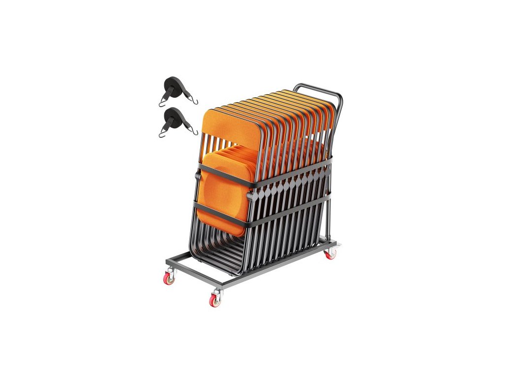Skládací stojan na židle VEVOR, nosnost 136 kg, vertikální vozík na židle ve tvaru L pro 25 židlí, odolný kovový úložný vozík na židle s gumovými kolečky, multifunkční držák na židle, matně černáZavěšení ramen