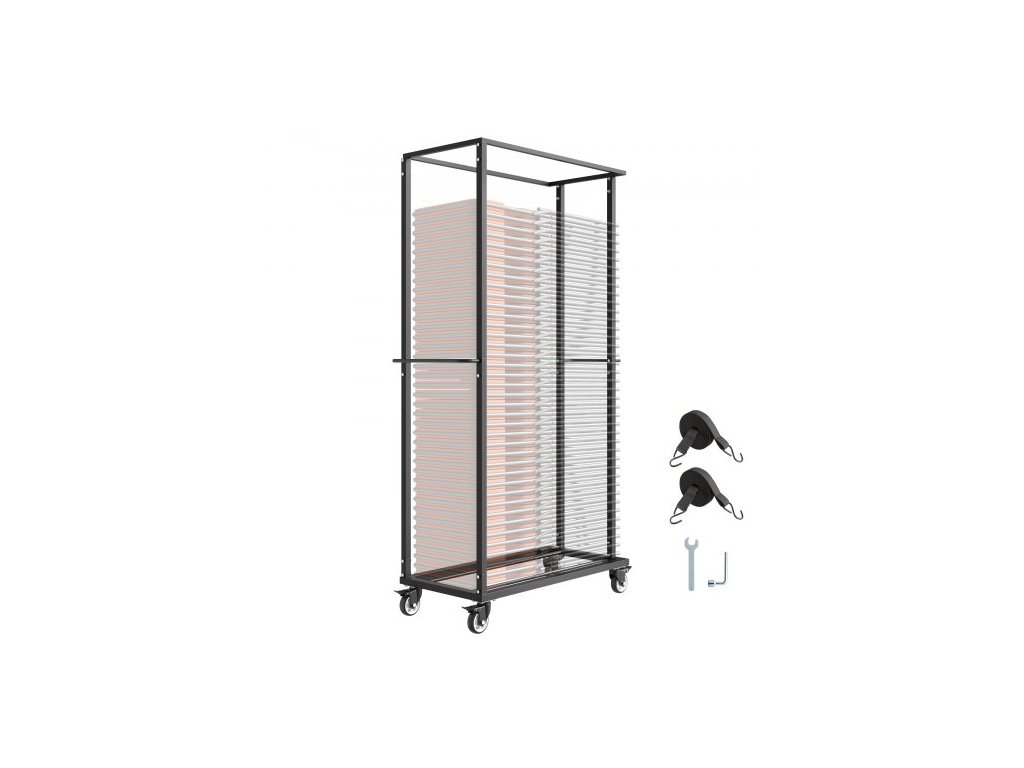 Skládací stojan na židle VEVOR, nosnost 500 liber, odolný vozík na židle pro 60 židlí, kovový držák na židle s otočnými kolečky a aretačními koly, pro párty, akce, hotel, matně černáRámová lišta