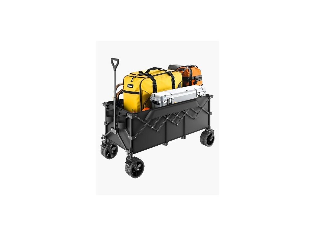 Skládací vozík VEVOR s prodlouženou zadní výklopnou zádí, velkokapacitní skládací vozík o hmotnosti 450 liber a objemu 300 litrů, odolné skládací užitkové vozíky s terénními koly, venkovní zahradní vozík na kempování s potravinami2 držáky na pohárky
