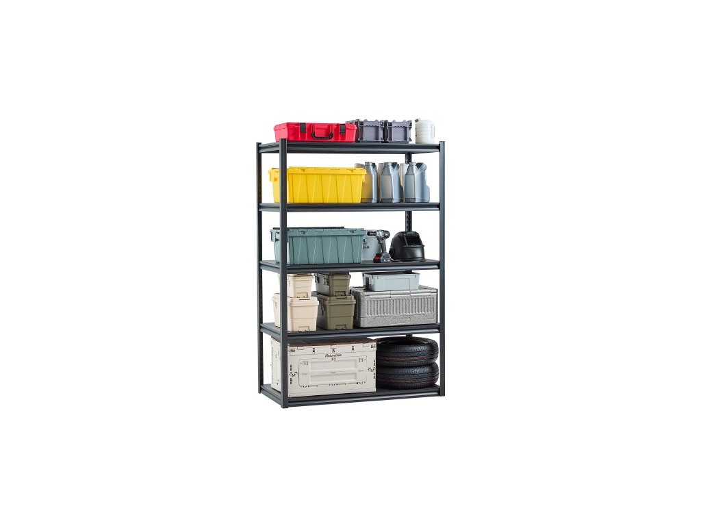 Skladovací police VEVOR, 1366 kg, 5patrové garážové skladovací police, 61 cm H x 122 cm Š x 183 cm V, nastavitelné kovové police do garáže, úložný regál, ideální do kuchyně, skladu, sklepa, černé