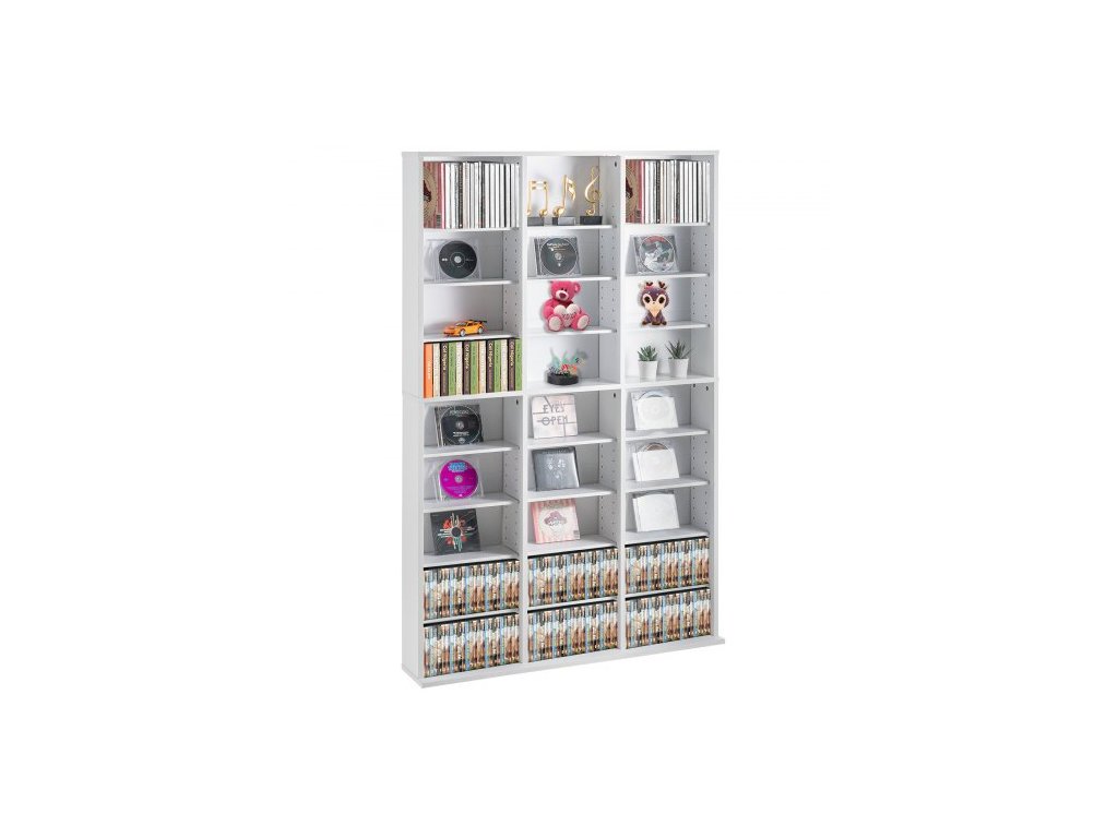 Skříň na média VEVOR, 9vrstvá DVD police, pojme až 756 CD, nastavitelné police na CD, 27 přihrádek, chrání a organizuje hudbu, filmy, videohry nebo sbírky memorabilií, bíláPřizpůsobitelný úložný prostor