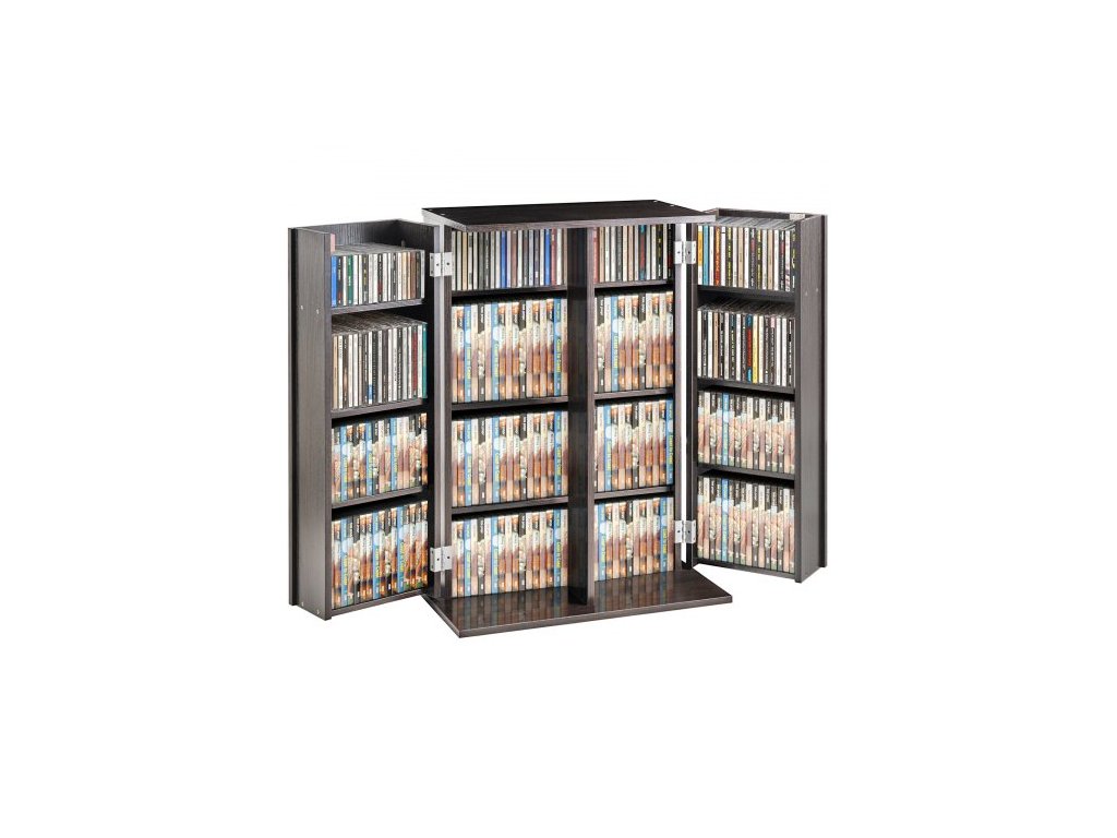 Skříň na média VEVOR, DVD skříň s dvířky a policemi, úložný prostor na CD až pro 576 CD, nastavitelná police na DVD, chrání a organizuje hudbu, filmy, videohry nebo sbírky - EspressoPřizpůsobitelný úložný prostor