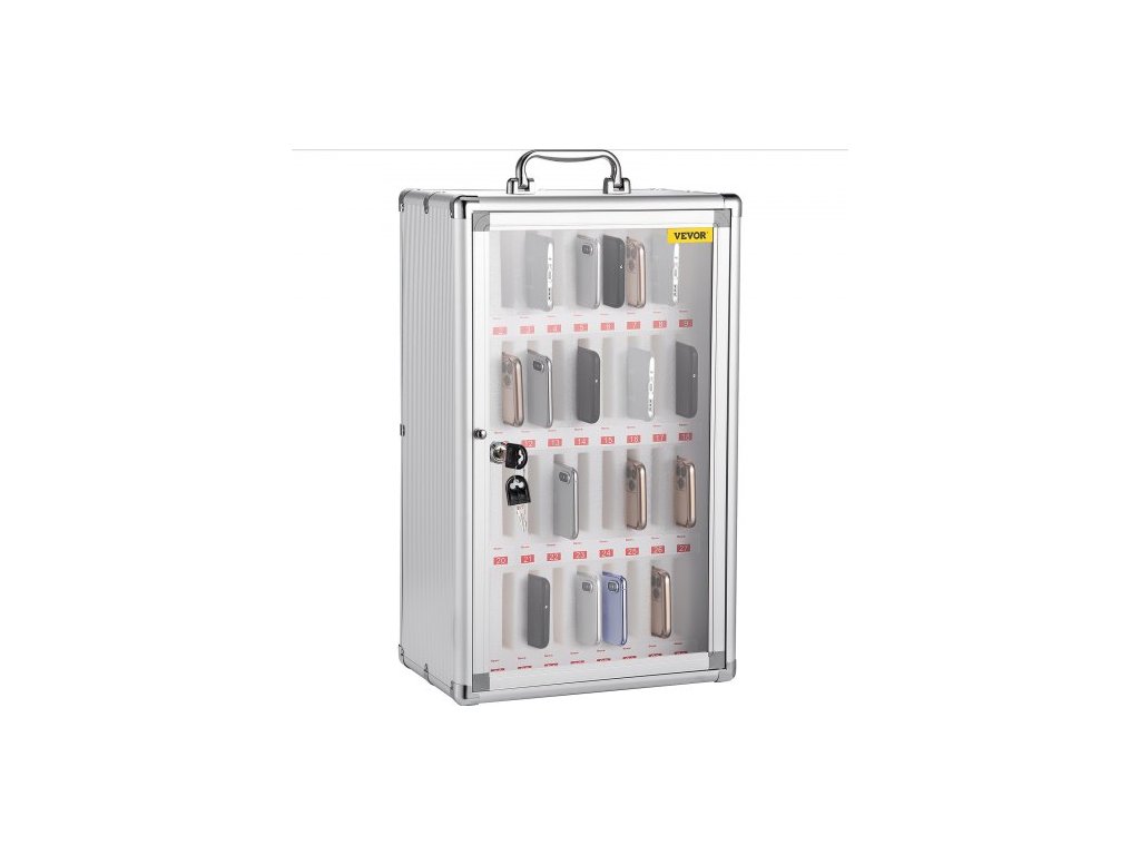 Skříňka na mobilní telefon VEVOR, 36 slotů, úložná skříňka na mapy z hliníkové slitiny s přenosnou rukojetí, zámkem na klíče a ručně psanými štítky, nástěnná pro učebnu, kancelář, posilovnu36 slotů pro mobilní telefon