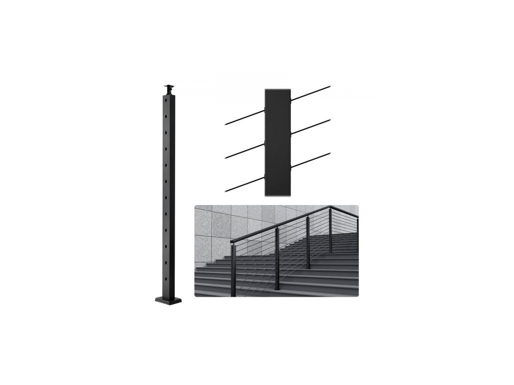 Sloupek zábradlí VEVOR pro kabely, ocelový sloupek zábradlí pro schody s úhlem 30° 42" x 1" x 2", 12 předvrtaných otvorů, nerezový sloupek zábradlí SUS304 s horizontálním a zakřiveným držákem, 1JZLGZHS1067HNEKBV0