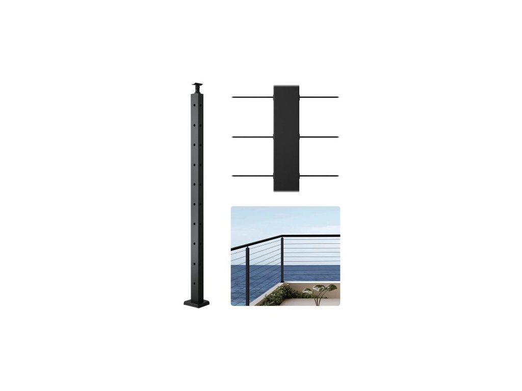 Sloupek zábradlí VEVOR pro kabely, rohový sloupek zábradlí 36x1x2 palce, s předvrtanými otvory ve tvaru L, nerezový sloupek zábradlí pro kabely s horizontálním a zakřiveným držákem, balení po 1 kusu, černý, 1JZLGZXHS914IVCFL001V0Sloupek zábradlí typu L s otvorem