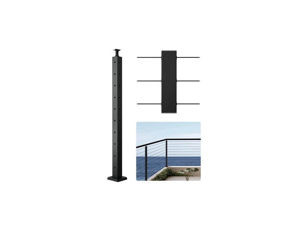 Sloupek zábradlí VEVOR pro kabely, rohový sloupek zábradlí 914,4 x 50,8 x 50,8 mm, s předvrtanými otvory ve tvaru L, nerezová ocel s horizontálním a zakřiveným držákem, balení po 1 kusu, černý, 1JZLGZXHS914ZPBNY001V0Sloupek zábradlí typu L s otvorem