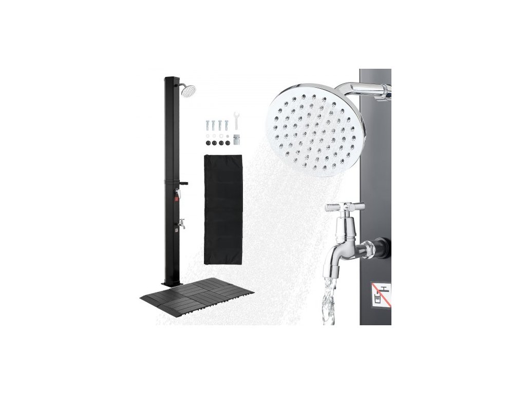 Solární sprcha VEVOR 35L, výška sprchové hlavice 195 cm, venkovní sprcha, s podlahovou sadou a nožní baterií, nastavení teplé a studené vody, volně stojící pro zahradní bazén a plážový bazén, černáUrčeno pro venkovní sprchy s teplou vodou