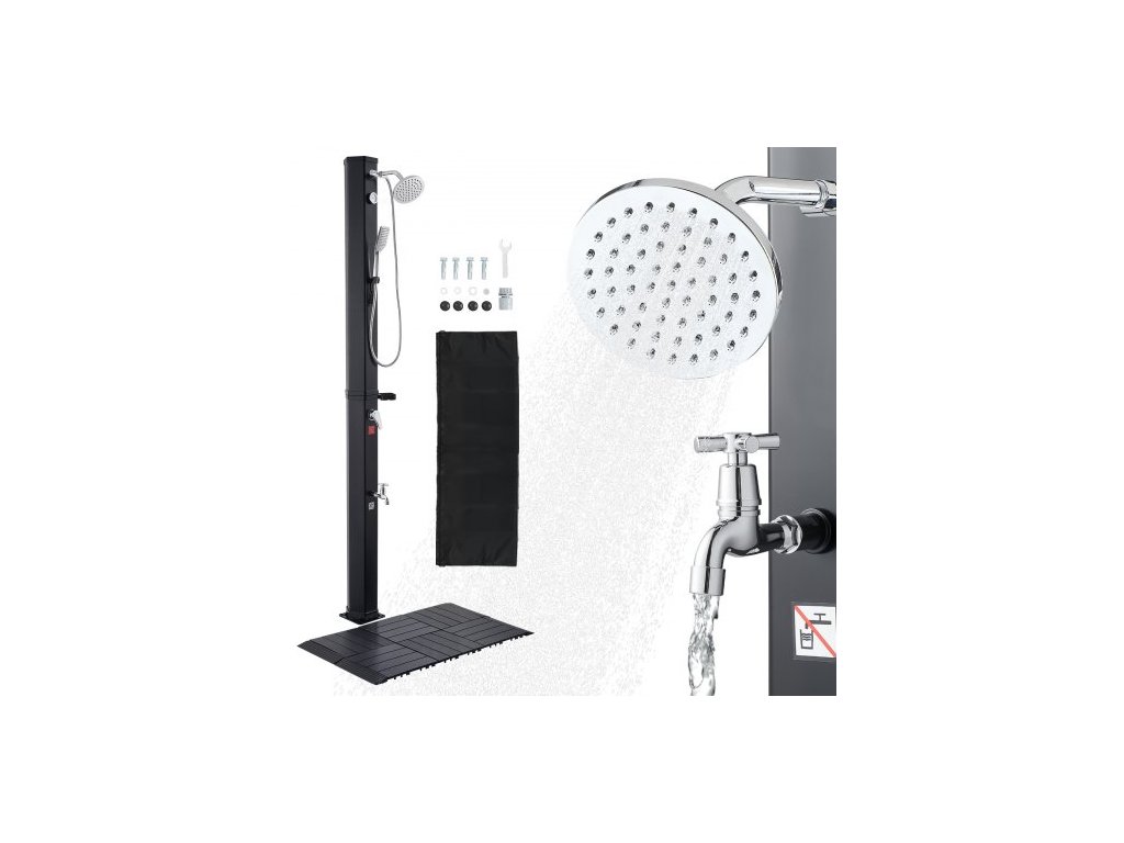 Solární sprcha VEVOR 40L, výška sprchové hlavice 205 cm, venkovní sprcha, s podlahovou sadou a ruční a nožní baterií, nastavení teplé a studené vody, volně stojící pro zahradní bazén u pláže, černáUrčeno pro venkovní sprchy s teplou vodou