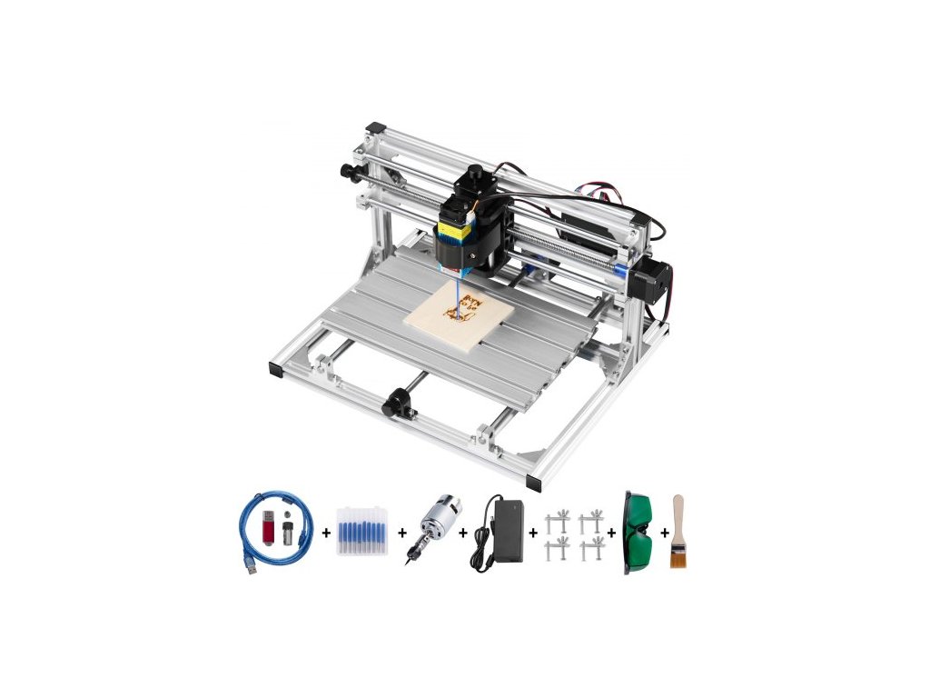 Pohonné jednotky: Šrouby z nerezové oceli T8, Ovládací software: GRBL Control, Přesnost polohování: 0,003"-0,004" / 0,08-0,1 mm,Model: VG-S3018, Průměr frézy: 0,125" / 3,175 mm, Materiály: 2020 hliník, Otáčky vřetena: 10000 ot./min, Vstupní napájení: DC 24V 5A, Krokový motor: Velikost 42, 12V. Točivý moment: 0,25 N/m, Rozměr položky: 15,7" x 11,8" x 9,4" / 400 x 300 x 240 mm, Efektivní pracovní plocha (X x Y x Z): 11,8" x 7,1" x 1,8" / 300 x 180 x 45 mm