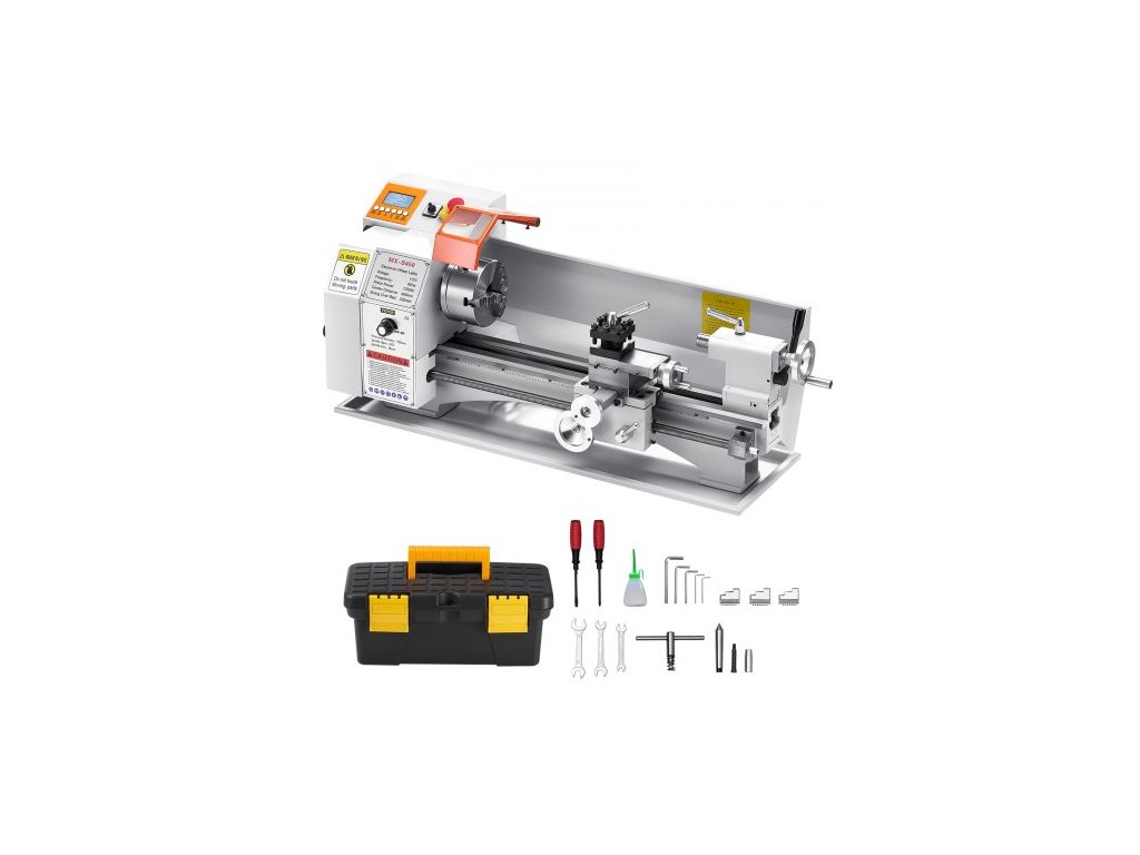 Soustruh na kov VEVOR, 220 x 450 mm (8,7 x 18 palců), přesný stolní soustruh na kov, automatický posuv, proměnná rychlost 0–2500 ot./min, bezkartáčový motor 1250 W, pro zpracování přesných dílů z měkkých kovů a dřeva a plastůPřesné obrábění