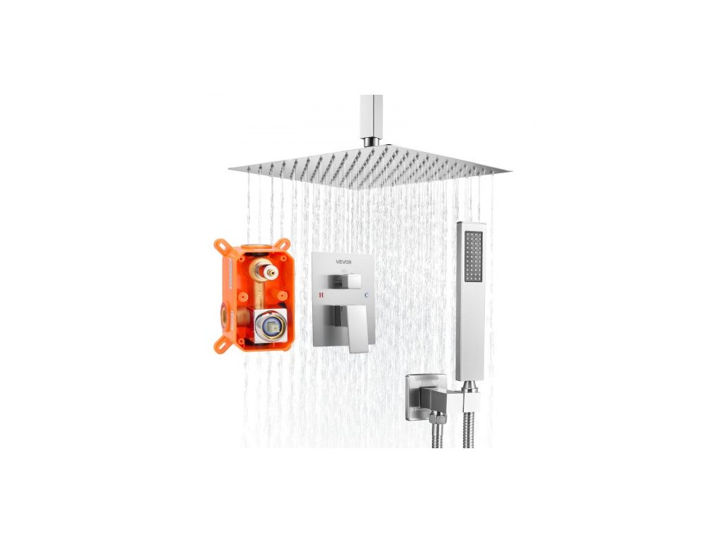 Sprchová baterie VEVOR, sprchový systém Rainfall s čtvercovou sprchovou hlavicí Rain o průměru 30,5 cm a ruční sprchou, stropní vanové armatury s mosazným ventilem a ozdobnou sadou, kartáčovaný nikl