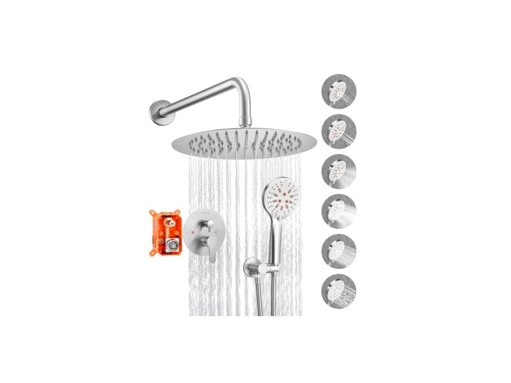 Sprchová baterie VEVOR, sprchový systém Rainfall s kulatou sprchovou hlavicí Rain o průměru 25,4 cm a ruční sprchou, nástěnné vanové armatury s mosazným ventilem a ozdobnou sadou, kartáčovaný nikl