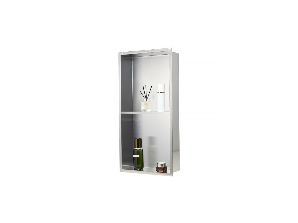 Sprchový výklenek VEVOR, 33,0 x 63,5 x 10,2 cm, zapuštěný do zdi, dvouvrstvý, s dutou dělicí přepážkou, odolný moderní organizér na šampon z nerezové oceli, vodotěsný, stříbrný, do koupelny