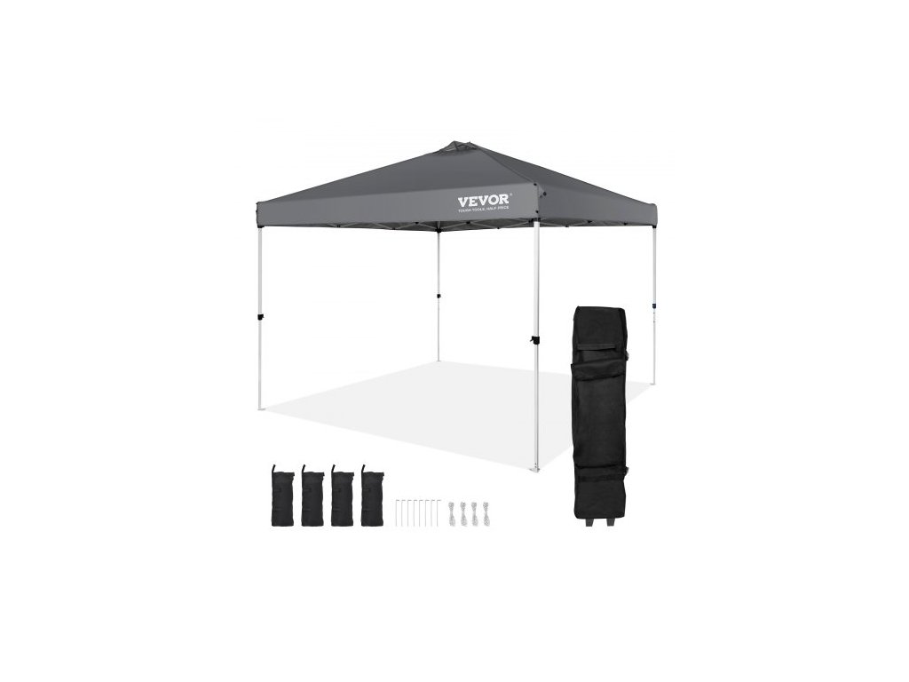 Stan VEVOR s rozkládací stříškou, 3 x 3 m, plachta 250 D PU se stříbrným povlakem, s přenosným vakem na kolečkách a 4 pytli s pískem, vodotěsný a sluneční stříška s altánem pro venkovní párty, kempování, komerční akce, tmavě šedý