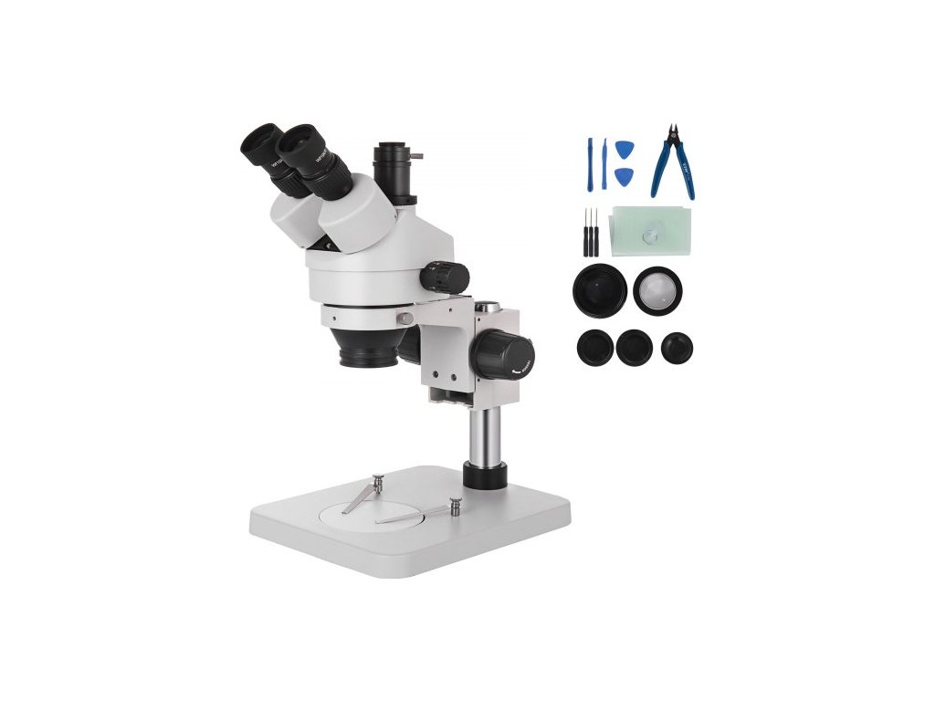 Stereomikroskop VEVOR 3,5X-90X s otočným trinokulárním stereo mikroskopem o 360° a sloupkovým stojanemSlitina Al-Zn a optické čočky