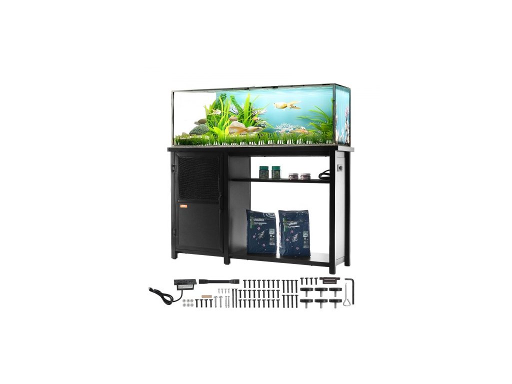 Stojan na akvárium VEVOR, stojan na akvárium o objemu 75 galonů, stojan na akvárium pro želvy z oceli a MDF, nosnost 626 liber, stojan na akvárium pro plazy s úložnou skříní a vestavěným napájecím panelem, černý