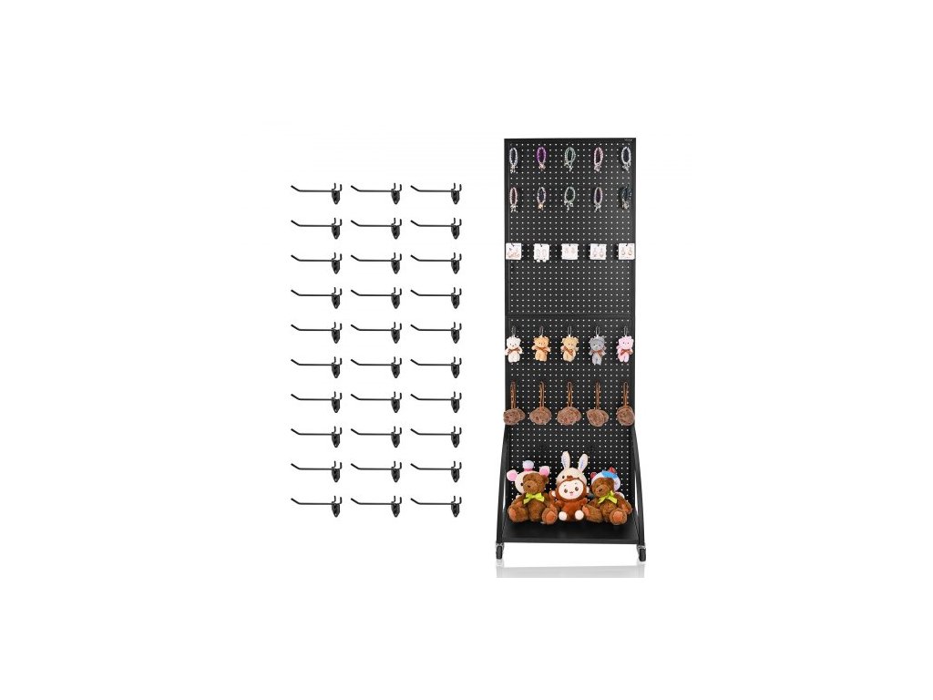Stojan na děrovanou desku VEVOR, stolní stojan z děrované desky 43 x 33 cm s 15 háčky, zesílený ocelový panel válcovaný za studena pro obchody s potravinami, maloobchody a klenotnictví, černý (1 ks)