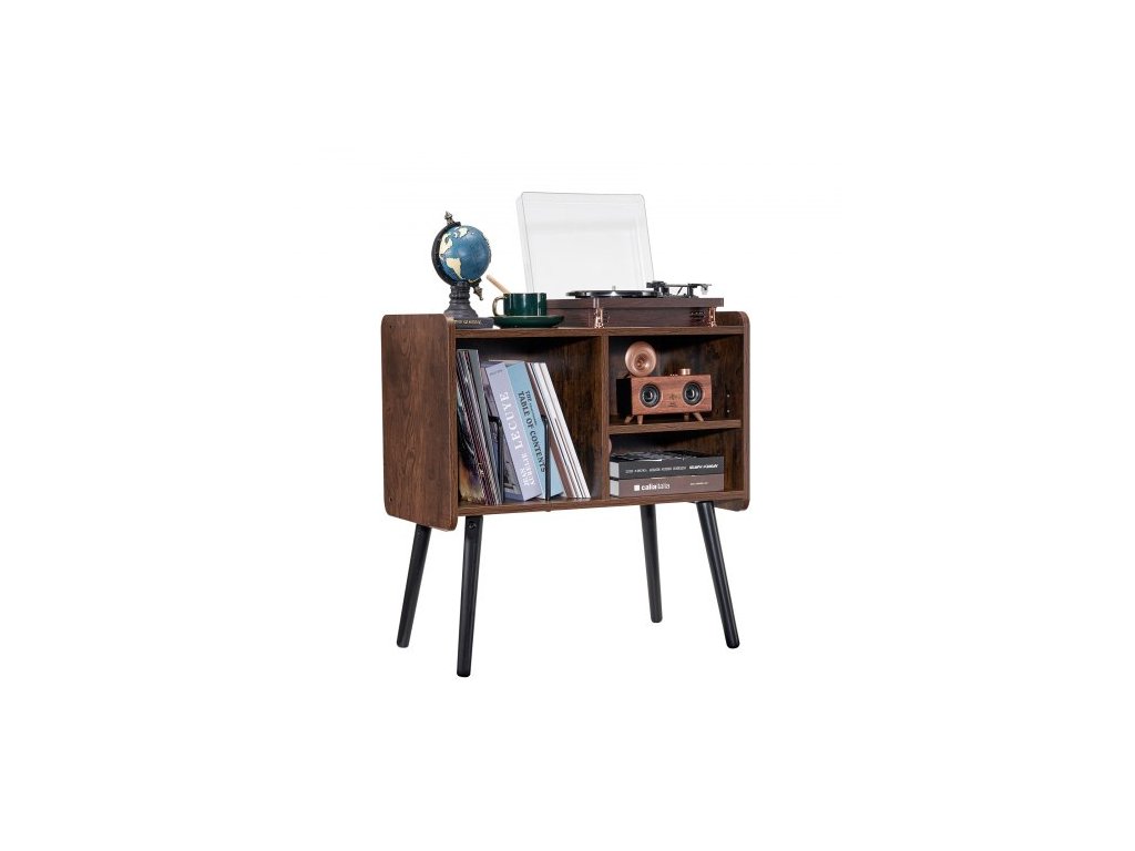 Stojan na gramofon VEVOR, stojan na gramofon až pro 100 alb, vintage skříňka na vinylové desky s odnímatelnými policemi, stolek na gramofon s nastavitelnou výškou do obývacího pokoje, ložnice, hnědý
