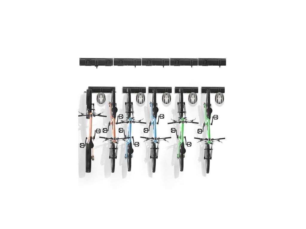 Stojan na kola VEVOR, 6 stojanů na kola a 5 háčků na helmy, nástěnný věšák na kola, organizér do domácnosti a garáže, přizpůsobitelný pro různé velikosti kol, nastavitelný držák, nosnost až 136 kg, 213 cmVytvořte více prostoru