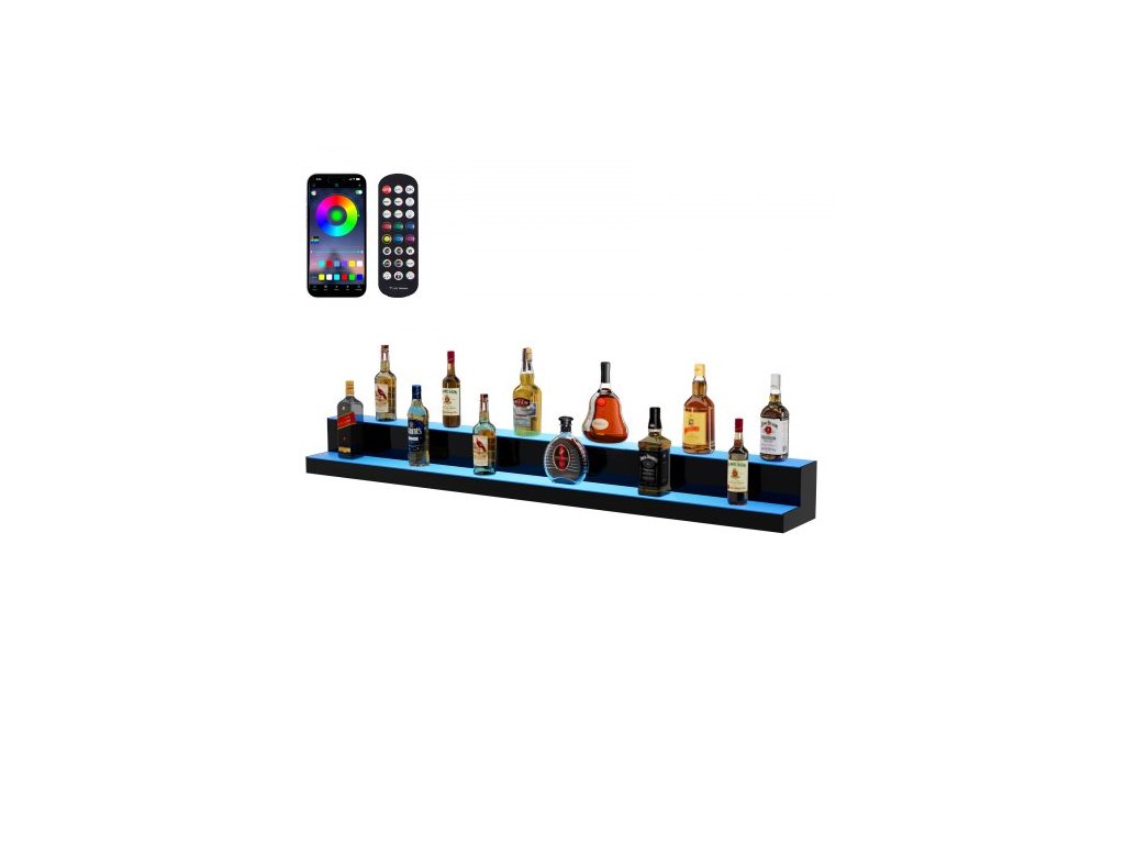 Stojan na lahve s alkoholem VEVOR s LED osvětlením, 2 úrovně, 60palcový komerční osvětlený domácí barový regál, 2stupňový stojan na whisky, akrylové police na nápoje s RF dálkovým ovládáním a ovládáním pomocí aplikace a vícebarevné osvětlení.Vícebarevné LED osvětlení