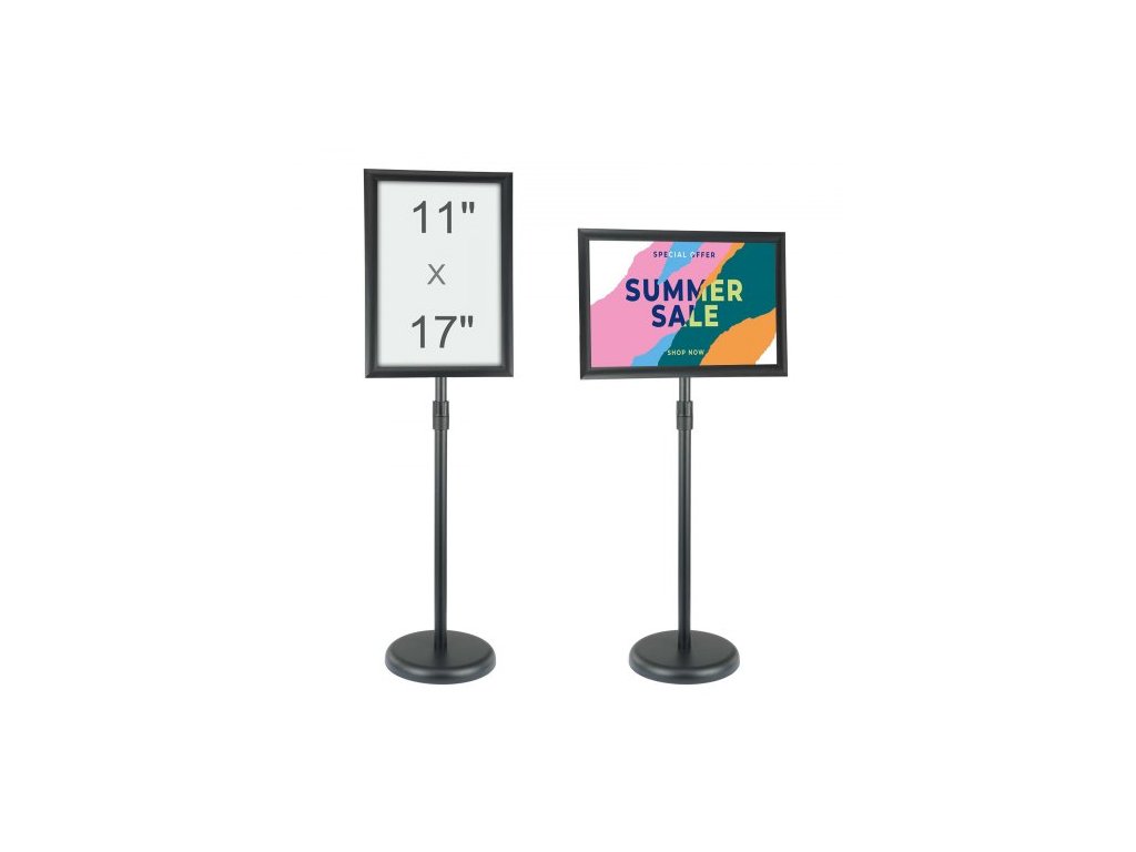 Stojan na plakáty VEVOR, vertikální a horizontální nastavitelný stojan na plakáty 11 x 17 palců, odolný podlahový držák na plakáty s kulatou základnou pro vystavení, reklamu a venkovní použití, černý